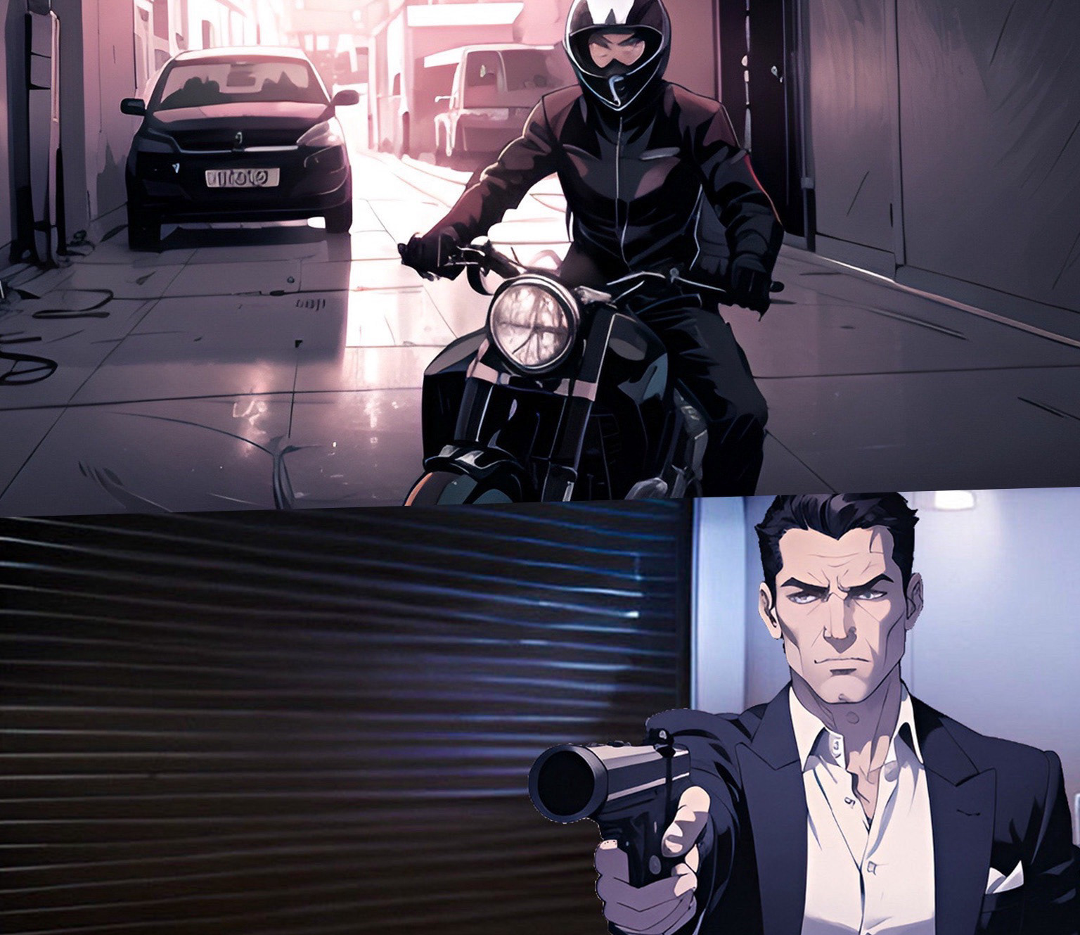 Το κράνος μου είχε θολώσει τελείως, δεν έβλεπα τίποτα μπροστά μου. Ήμουν σίγουρος που μετρούσαν αντίστροφα τα τελευταία μου δευτερόλεπτα στη γη. Άκουσα δύο ακόμη πυροβολισμούς, όμως δεν ένιωσα τίποτα στο κορμί μου. Ένας δυνατός ήχος από λάστιχο που φθείρεται πάνω σε χαλίκι μ’ έκανε να πάρω την πρώτη μου ανάσα από τη στιγμή που έπεσα στο έδαφος. Ανασήκωσα σοκαρισμένος το κεφάλι μου και με χέρια μου άνοιξα το προστατευτικό πλαστικό του κράνους. Ο πόνος στο πόδι μου από το βάρος της μηχανής έγινε αφόρητος. Είδα δύο φιγούρες ν’ απομακρύνονται και στην άκρη της αυλής αιμόφυρτο τον κύριο Λευτέρη από την διπλανή πολυκατοικία.